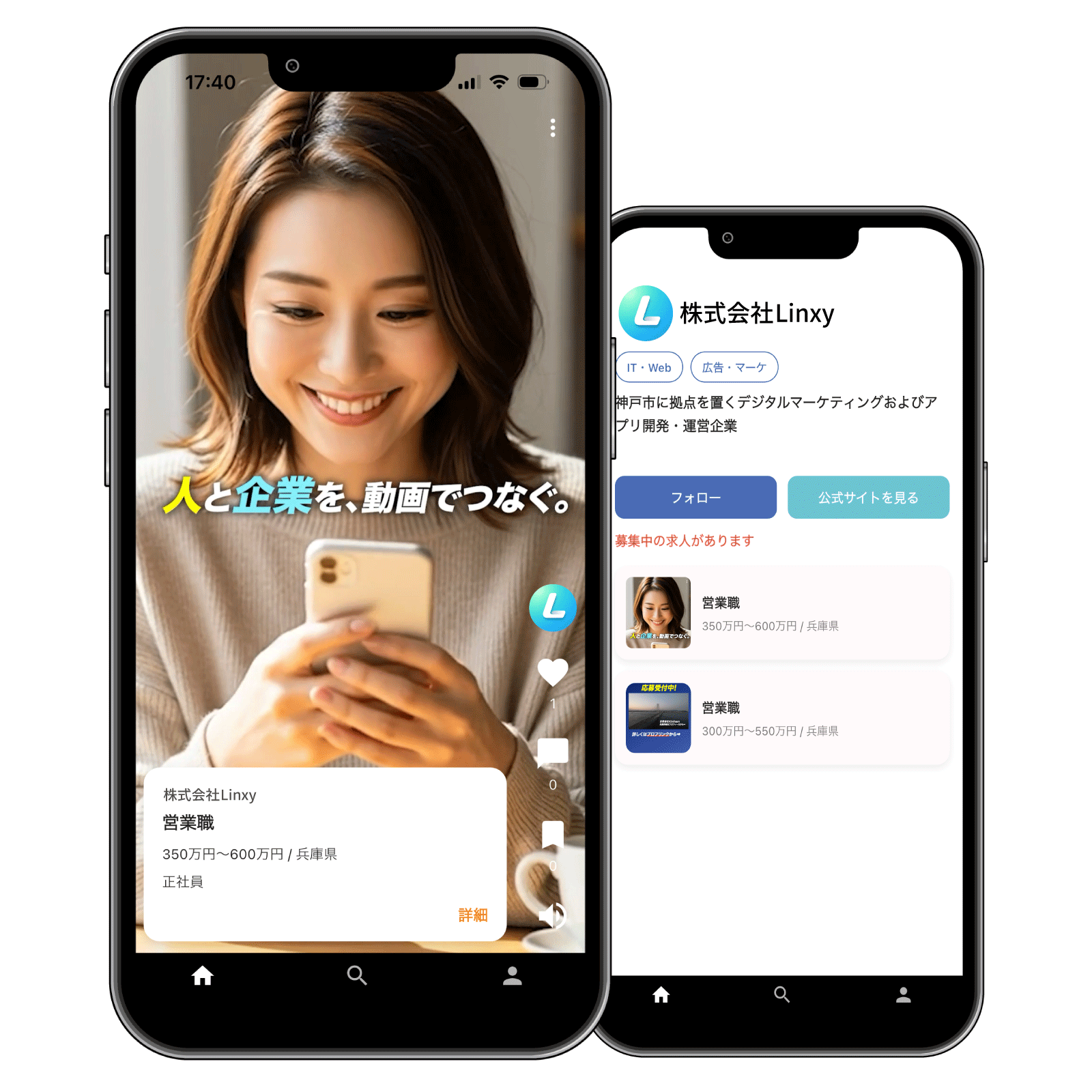 Linxyは、SNSのようなショート動画で企業と出会えるSNS型求人プラットフォームです。